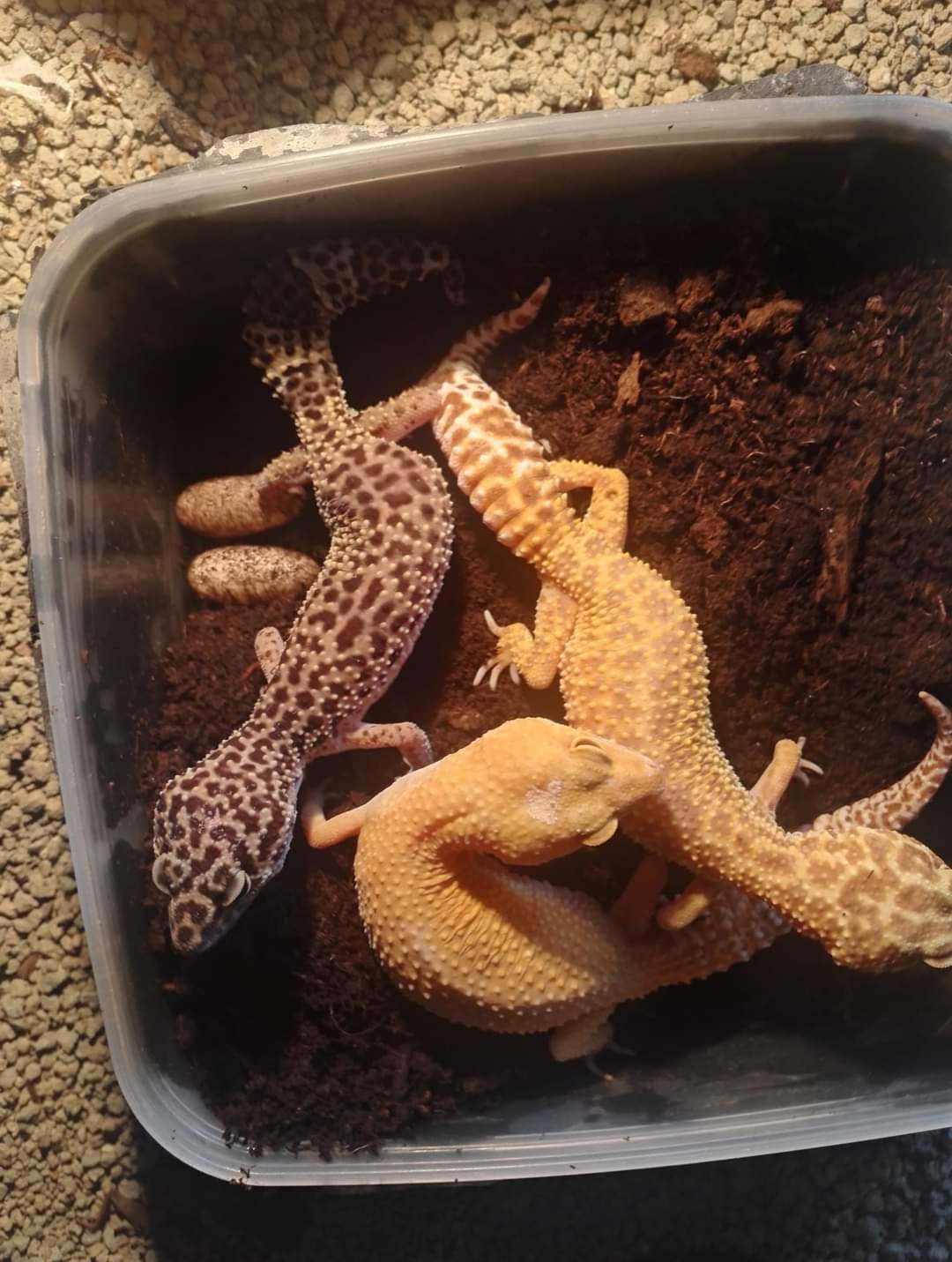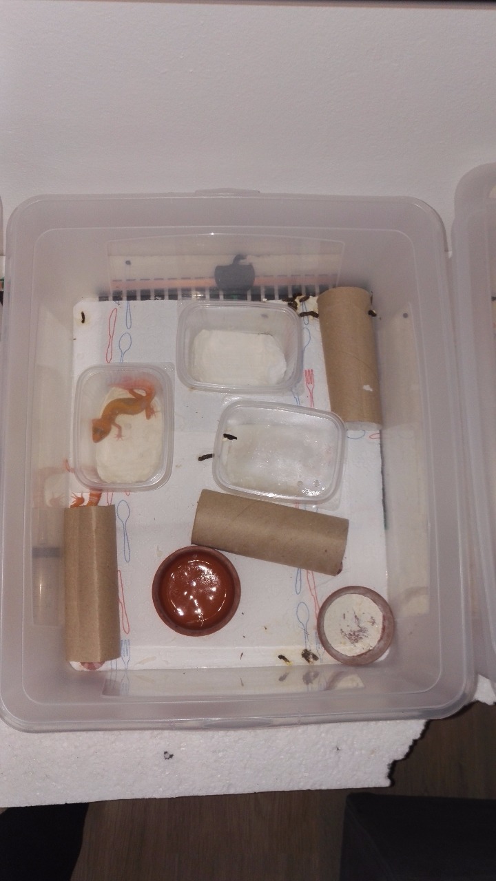 Než zařadím gekončíka do chovné skupiny,musí projít vstupní karanténou. Ta se doporučuje 30-ti denní. Během karantény je každý gekončík noční držen individuelně v odděleném karanténním boxu. Jako podklad slouží kuchyňské papírové ubrousky, které 3x týdně měním. V nádrži se nachází jen miska s vodou a úkryt,například roura od toaletního papíru, půlka kokosového s otvorem. ManipulacePamatujte na to, že gekončík není klasický domácí mazlíček jako pes nebo kočka, proto je třeba s ním zacházet opatrně. Pokud s ním chcete být více v kontaktu, musíte ho na to odmalička pravidelně připravovat. Čím méně jste s ním v blízkém kontaktu, tím lépe pro něj. Samozřejmě jsou i výjimky.